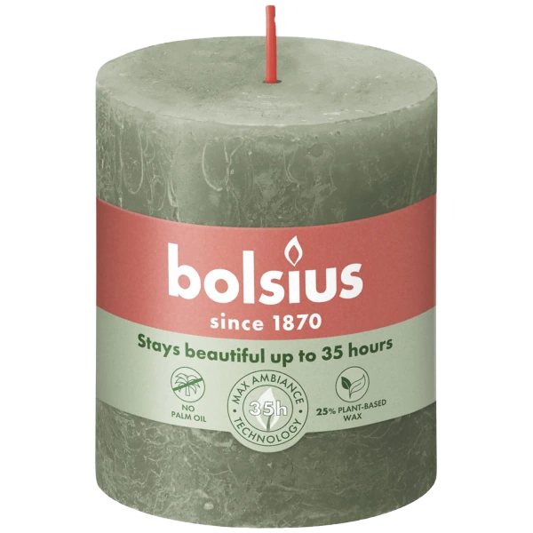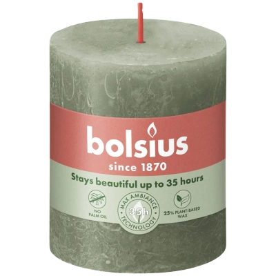 Bolsius rustikální kulatá svíčka Rustic Shine 76 mm - svěží olivově zelená