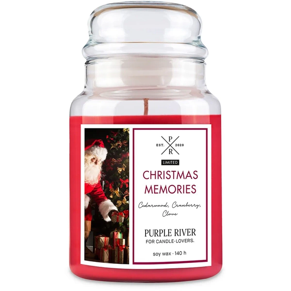 Vánoční vonná svíčka sojová ve skle s vůní brusinek a hřebíčku Christmas Memories Purple River 623 g