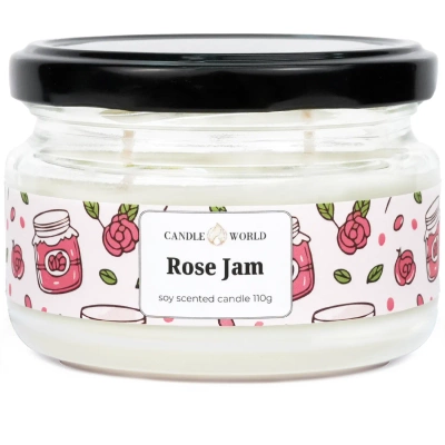 Candle World sójová vonná svíčka ve sklenici Rose Jam 110 g Rose