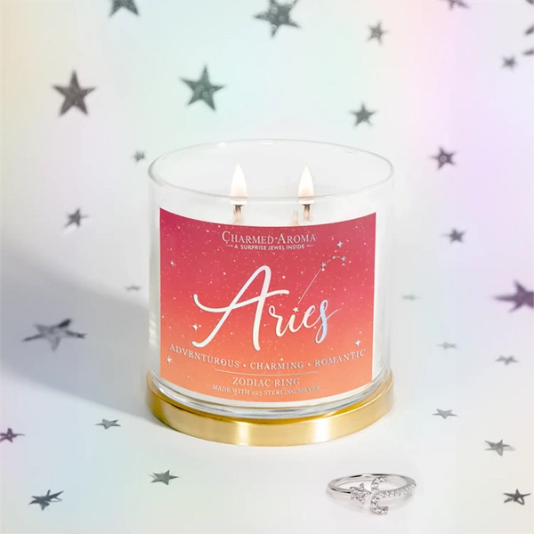Charmed Aroma Jewel Sojaduftkerze mit Silberring 12 oz 340 g - Sternzeichen Widder