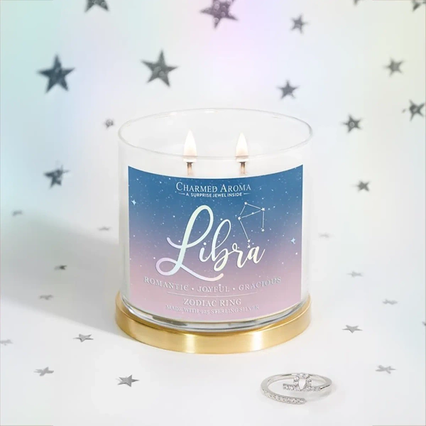 Charmed Aroma Jewel Sojaduftkerze mit Silberring 12 oz 340 g - Sternzeichen Waage