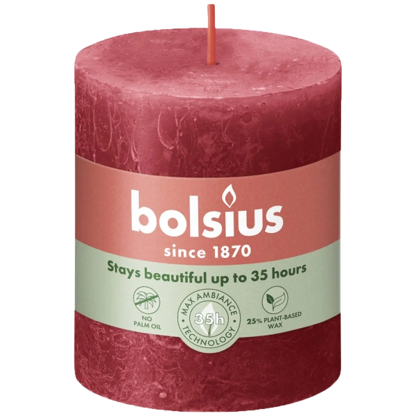Bolsius rustikale runde Kugelkerze Rustic Shine 76 mm - Zartes Rot