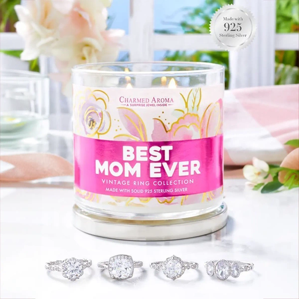 Kerze mit Schmuck Geschenk für Mama mit Ring im Inneren Best Mom Ever Charmed Aroma 340 g