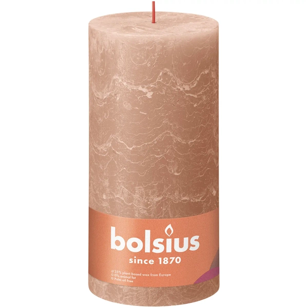 Bolsius rustikale Baumstamm-Kerzenstummel Rustic Shine 190/68 mm 19 cm - Nebliges Rosa