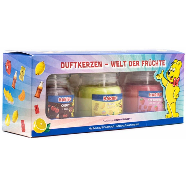 Geschenkset duftkerzen Haribo - Cherry Cola, Lemon Fruits, Strawberry Happiness