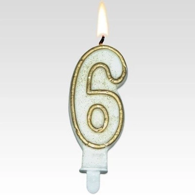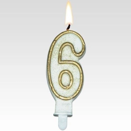 Geburtstagskerze Nummer 6 weiß und gold Tamipol