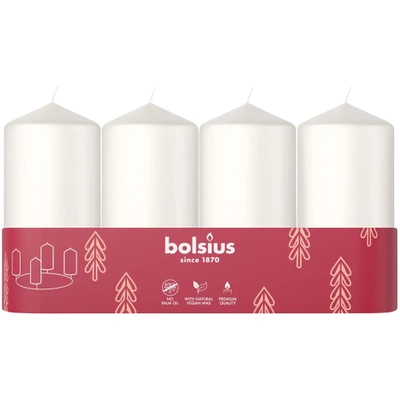 Bolsius brick trunk candle set of 4 pcs pillar unscented advent candle 10 cm 100/48 mm - White