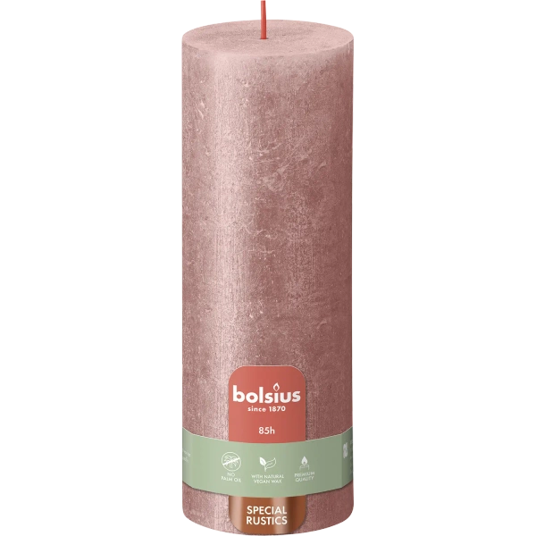 Bolsius Rustic Shimmer trunk solid candle rustic metallized unscented 19 cm 190/68 mm - Pink Pink