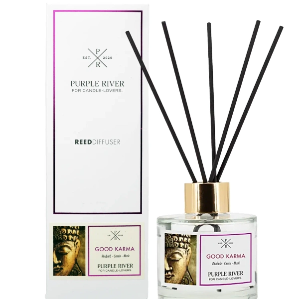 Fragrance sticks in a glass flacon packaged in a box Eucalyptus Lemongrass Purple River 100 ml