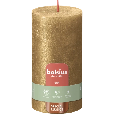 Bolsius Rustic Vela tronco Shimmer rústica metalizada sin aroma 13 cm 130/68 mm - Golden Gold