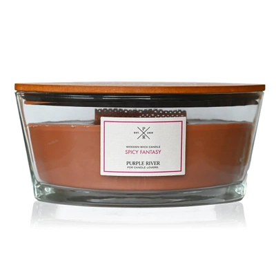 Vela perfumada con mecha de madera Spicy Fantasy 453 g Purple River
