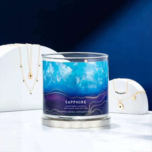 Vela con joya Charmed Aroma aromática de soja Collar – Zafiro Sapphire
