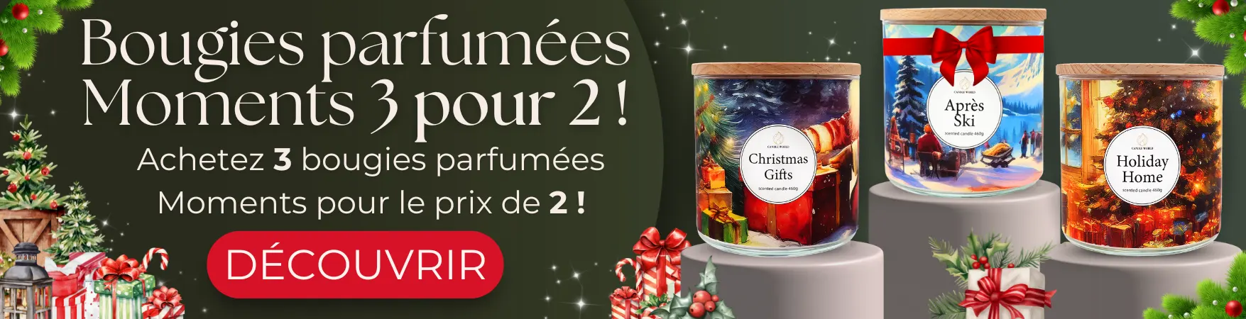 Nous garantissons un emballage soigné, une expédition rapide et un service client professionnel. Chez Candle World, vous trouverez non seulement des coffrets cadeaux et des promotions régulières, mais aussi des parfums pour la voiture, des sachets parfumés et des cires parfumées. Notre mission est de faire en sorte que chaque jour chez vous sente bon – et vous ressemble parfaitement.