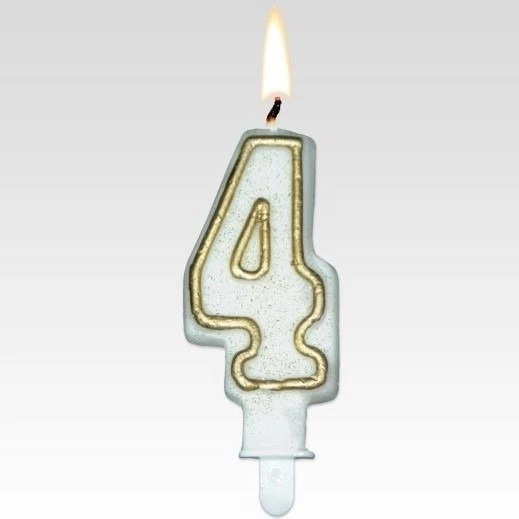 Bougie d'anniversaire numéro 4 blanc et or Tamipol