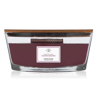 Grande bougie parfumée en verre ovale avec mèche en bois Calming Elegance 453 g Purple River