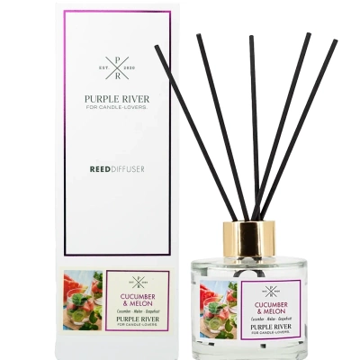 Bâtonnets parfumés dans une bouteille en verre emballés dans une boîte Cucumber Melon Purple River 100 ml