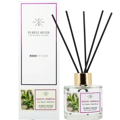 Bâtonnets parfumés dans une bouteille en verre emballés dans une boîte Lemon Verbena Purple River 100 ml