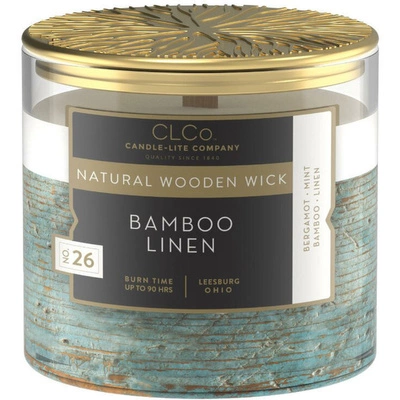 Grande bougie parfumée en verre avec mèche en bois Bamboo Linen Candle-lite 396 g
