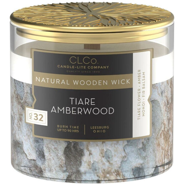 Grande bougie parfumée en verre avec mèche en bois Tiare Amberwood Candle-lite 396 g