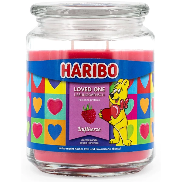 Haribo grande bougie parfumée en verre Loved One bonbons gélifiés à la framboise 510 g