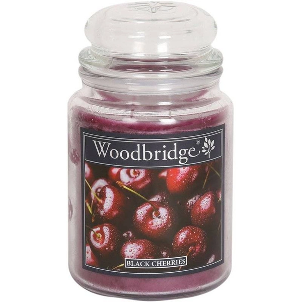 Grande bougie parfumée dans un pot en verre à deux mèches Black Cherry Woodbridge Candle 565 g