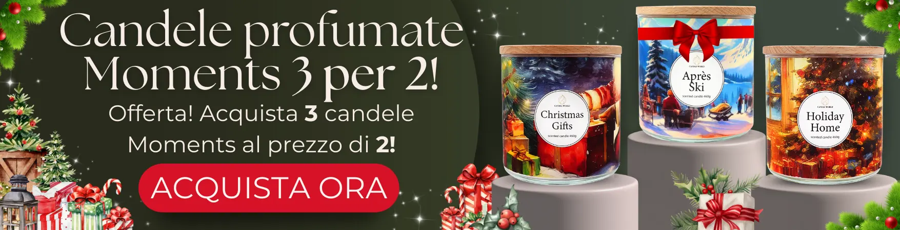 Garantiamo un imballaggio sicuro, una spedizione veloce e un’assistenza professionale. Su Candle World troverai non solo cofanetti regalo e promozioni regolari, ma anche profumi per auto, sacchetti profumati e cere profumate. La nostra missione è far sì che ogni giorno nella tua casa abbia un profumo meraviglioso – e sia esattamente come lo desideri.