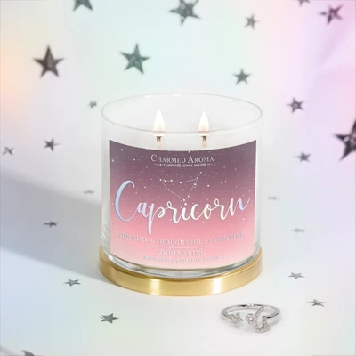 Candela profumata alla soia gioiello Charmed Aroma con anello in argento 12 oz 340 g - Segno zodiacale Capricorno