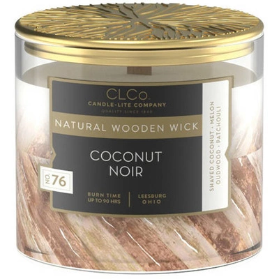 Candela profumata grande in vetro con stoppino in legno Coconut Noir Candle-lite 396 g