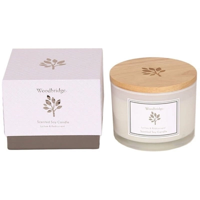 Candela grande profumata alla soia in vetro di latte come regalo confezionata in una scatola Lychee Redcurrant Woodbridge Candle 370 g