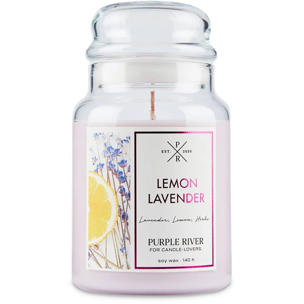 Candela di soia profumata in vetro grande lavanda limone Lemon Lavender Purple River 623 g