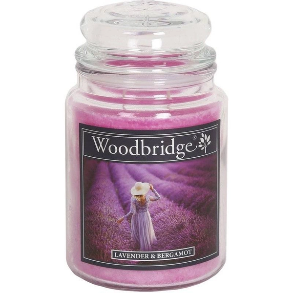Candela profumata grande in barattolo di vetro con due stoppini Lavanda Bergamotto Woodbridge Candle 565 g