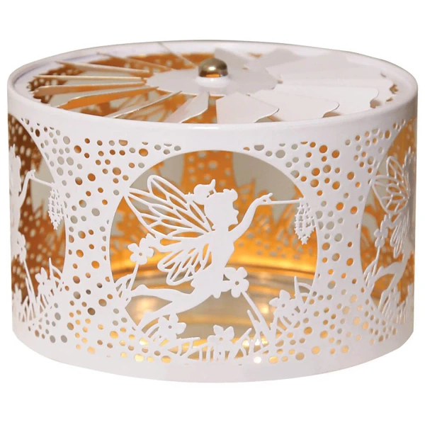 Copricandela fatato rotante in metallo Fairy White And Gold Woodbridge