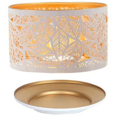 Set di accessori per candele in metallo coperchio di candela e vassoio portacandele Leafs White Woodbridge