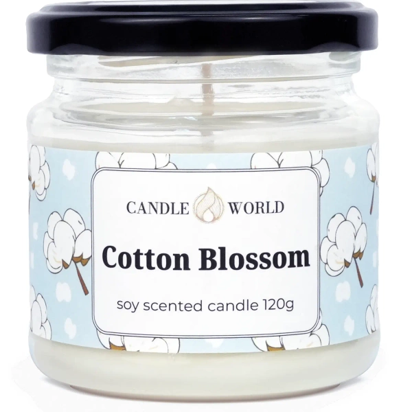 Candle World candela di soia profumata barattolo Cotton Blossom 120 g Cotone