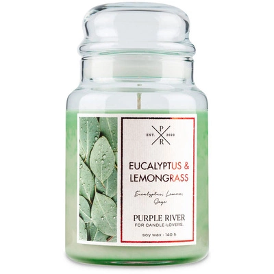 Candela grande profumata di soia in vetro eucalipto Eucalyptus Lemongrass Purple River 623 g