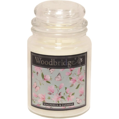 Grande candela profumata floreale in barattolo di vetro Magnolia & Jasmine Woodbridge Candle 565 g