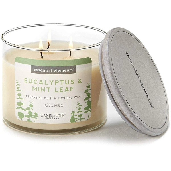Candela per aromaterapia grande alla soia in vetro con tre stoppini Eucalyptus Mint Leaf Candle-lite 418 g