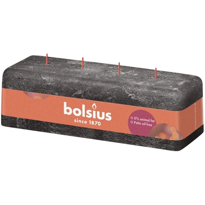 Bolsius candela rustica lunga grande 25 cm a 4 stoppini Rustic Shine 80/90/250 mm - Grigio Tempesta