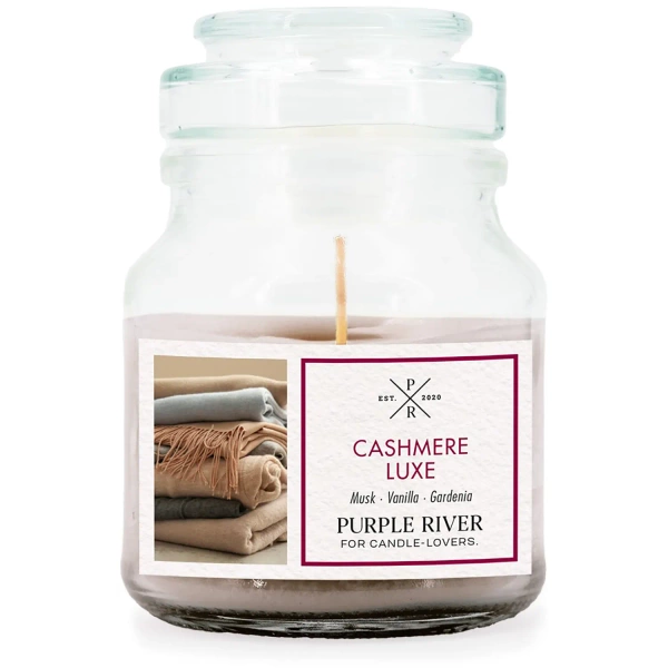 Candela di soia profumata in vetro Cashmere Lux Purple River 113 g
