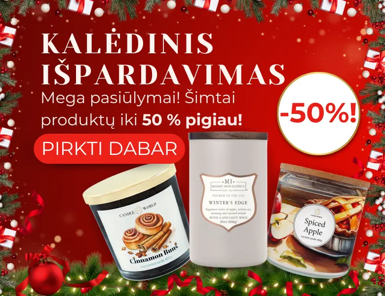 Candle World – tai parduotuvė, kurioje kvapniosios žvakės iš viso pasaulio padeda sukurti stilingą ir jaukią atmosferą. Mūsų kruopščiai atrinktas asortimentas apima ne tik kvapniąsias žvakes, bet ir licencijuotas kolekcijas, tokias kaip Haribo, Frida Kahlo ir Harry Potter. Čia taip pat rasite sojų vaško žvakes, dekoratyvines ir bekvapes žvakes bei specialiai parinktus žvakių aksesuarus, kurie pabrėžia kiekvieno interjero charakterį.