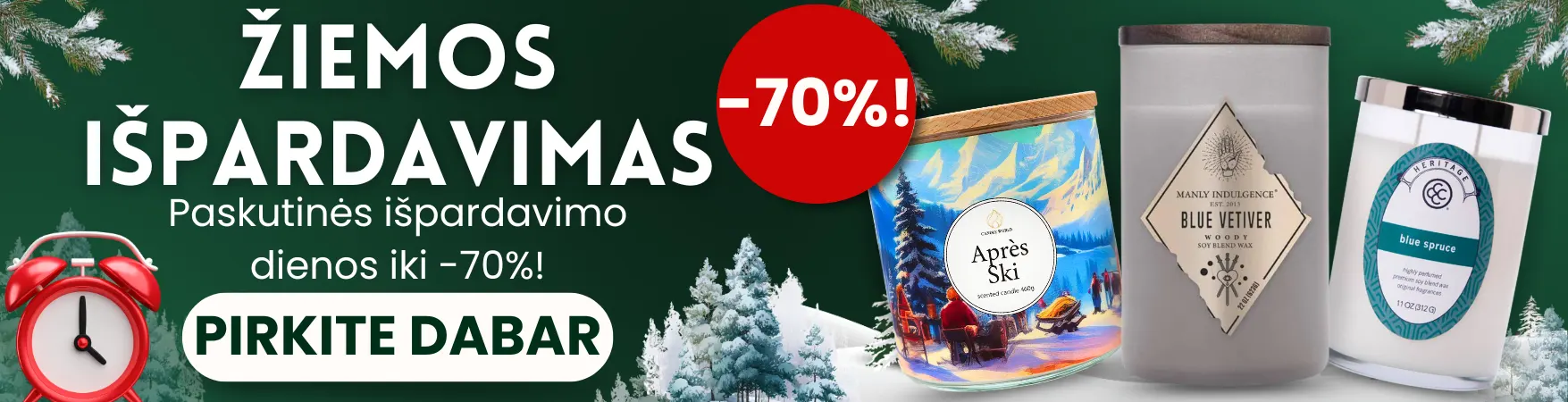 Užtikriname saugų pakavimą, greitą siuntimą ir profesionalų aptarnavimą. Candle World parduotuvėje rasite ne tik dovanų rinkinius ir reguliarias akcijas, bet ir automobilio kvapus, kvapiuosius maišelius bei kvapiąsias vaško plyteles. Mūsų misija – kad kiekviena Jūsų diena namuose kvepėtų nuostabiai – ir būtų būtent tokia, kokios norite.