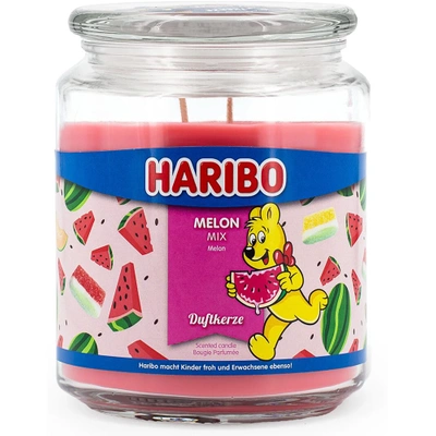 Didelė kvapioji žvakė stiklinėje arbūzų želė Haribo Melon Mix 510 g