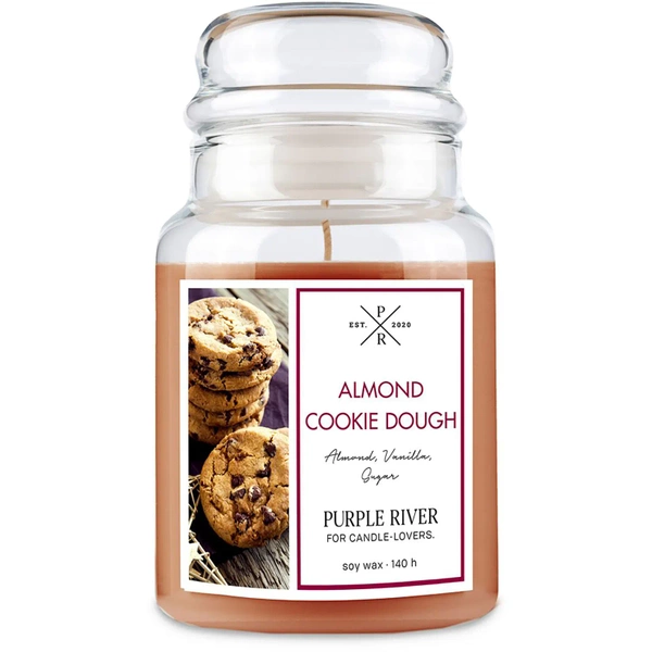 Didelė sojų kvapo žvakė stiklinėje migdoliniai sausainiai Almond Cookie Dough Purple River 623 g