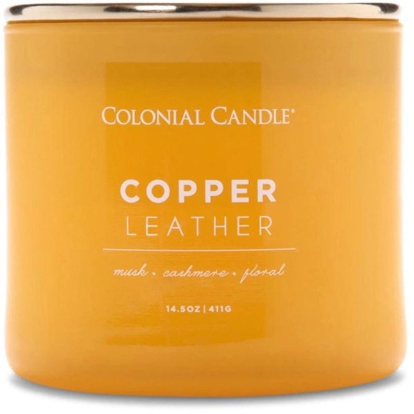 Colonial Candle Pop Of Color kvapioji sojų pupelių žvakė stiklinėje 3 dagčiai 14,5 uncijos 411 g - Copper Leather