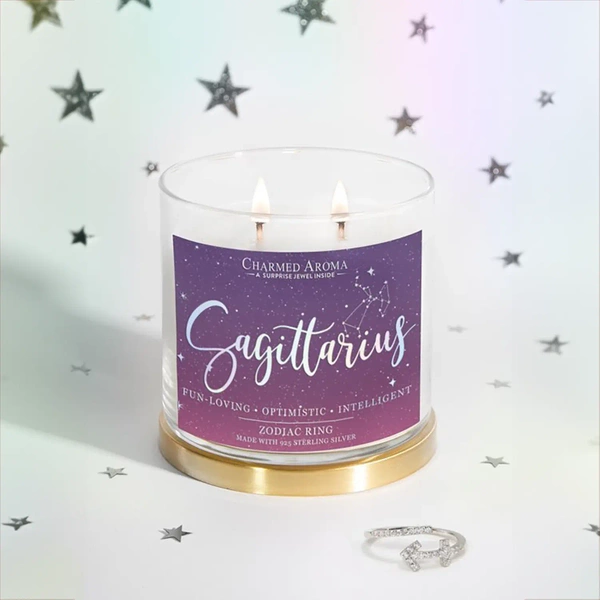 Charmed Aroma jewel sojų kvapioji žvakė su sidabriniu žiedu 12 uncijų 340 g - Šaulio zodiako ženklas