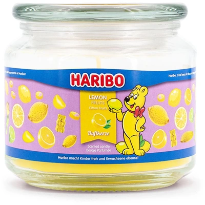 Haribo didelė kvapioji žvakė stiklinėje Jungle Party egzotiški vaisiai 510 g