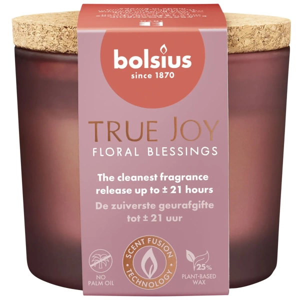 Bolsius True Joy vidutinio dydžio stiklinė kvapioji žvakė 66/83 mm - Floral Blessings