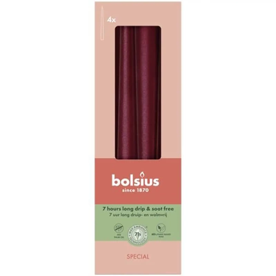 Bolsius geurloze metallic spike tafelkaars 4 st 245/24 mm - metallic rood