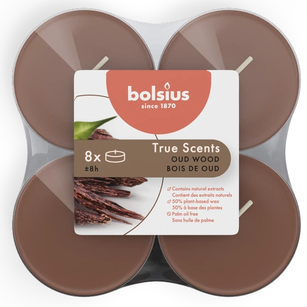 Bolsius True Scents geurwarmers maxi polycarbonaat 6 cm bruin 8 st - Oud Hout Agarhout