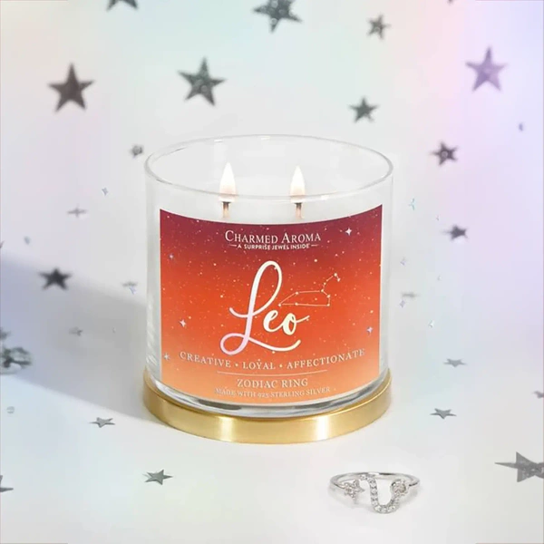 Charmed Aroma juweel soja geurkaars met zilveren ring 12 oz 340 g - sterrenbeeld Leeuw